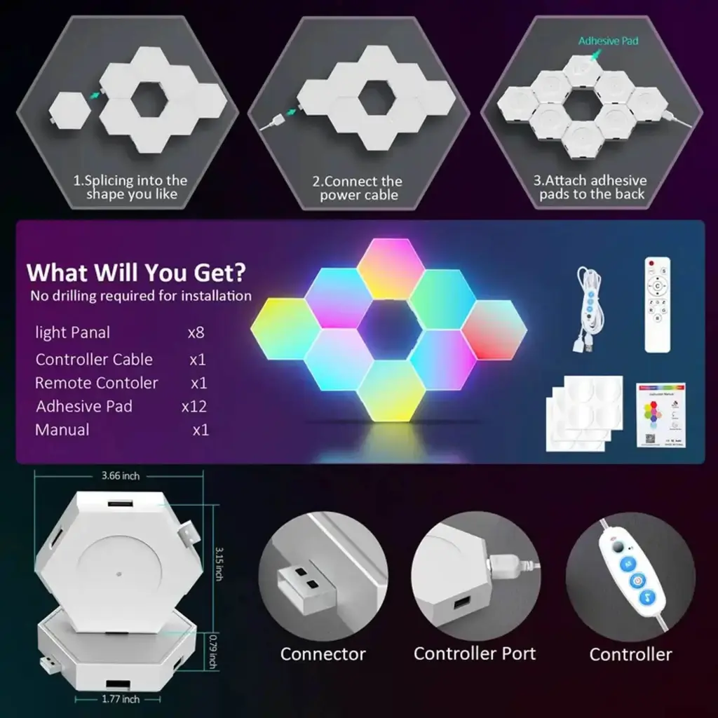 پنل دیواری RGB شش ضلعی RGB Hexa LED Wall Lights فقط یک چراغ نیست؛ ابزاری است برای خلق فضایی خاص، شخصی و متفاوت. چه به دنبال آرامش باشید چه هیجان، این محصول دیوار شما را به یک صحنه منحصربهفرد تبدیل میکند.